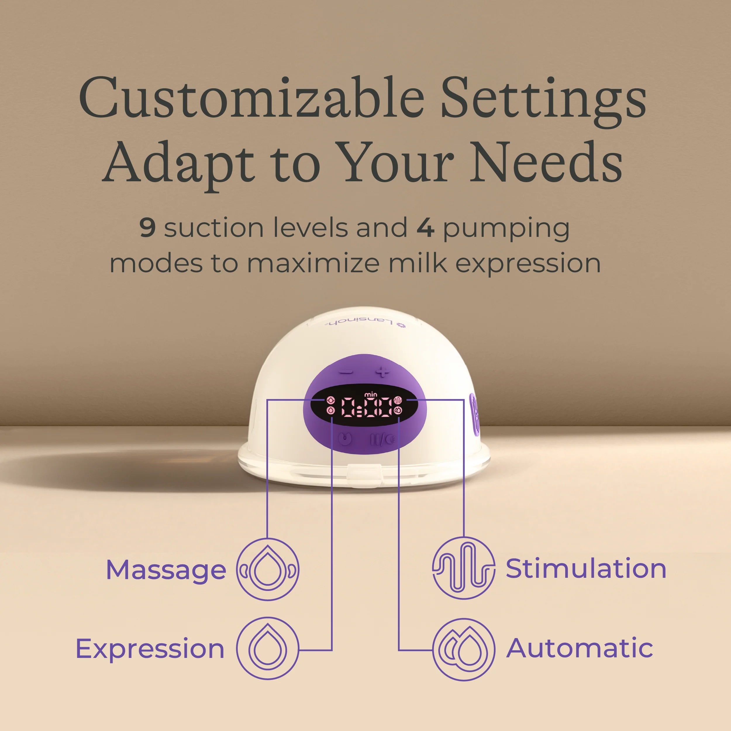 - CUSTOM SETTINGS - 4 pumping modes to customize each pumping session