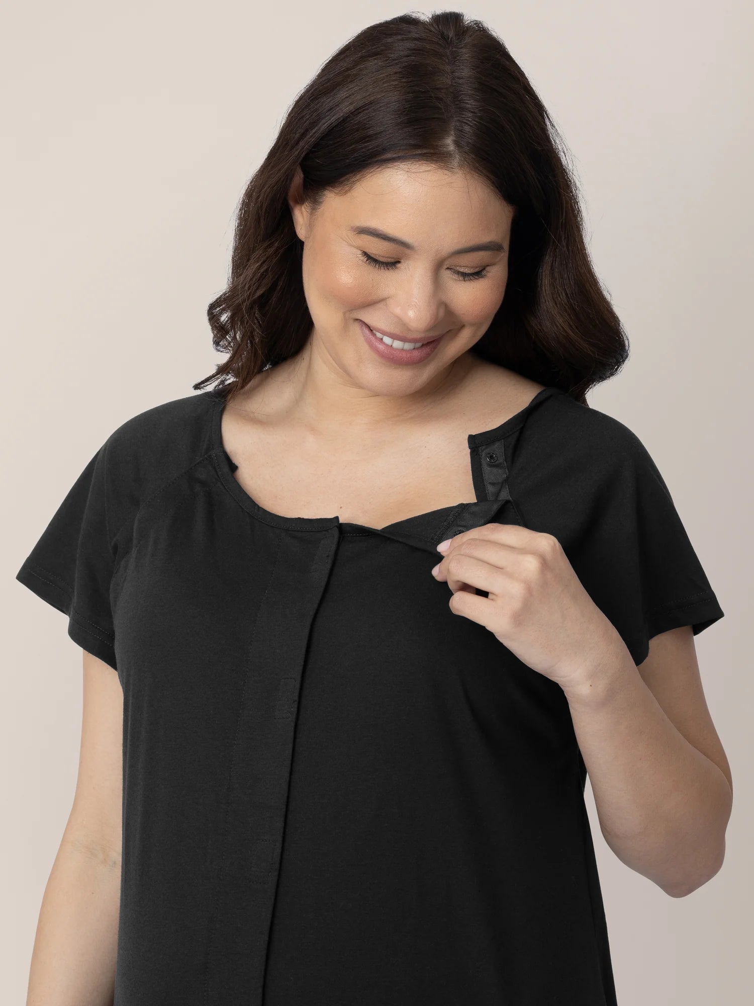 A hospital bag must-have! Pairing the functionality recommended by health care professionals with the comfort of your favorite, super-soft T-shirt, the Universal Labor & Delivery Gown brings the comfort of home to your delivery experience. The front opening allows for fetal monitoring, ultrasounds, C-section incision inspections, and skin-to-skin contact, while the back opening allows for easy epidural placement. The snaps along both shoulders make for quick breastfeeding access, and it even has convenient pockets!