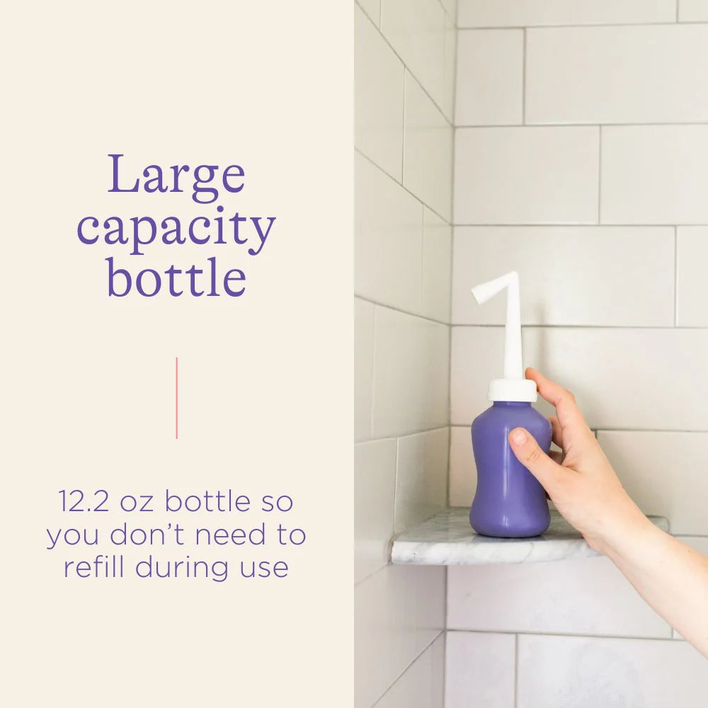 This upside-down wash bottle provides a gentle stream of water for easier postpartum care and more comfortable bathroom trips. Simple, safe, and backed by research and guidance from experts.