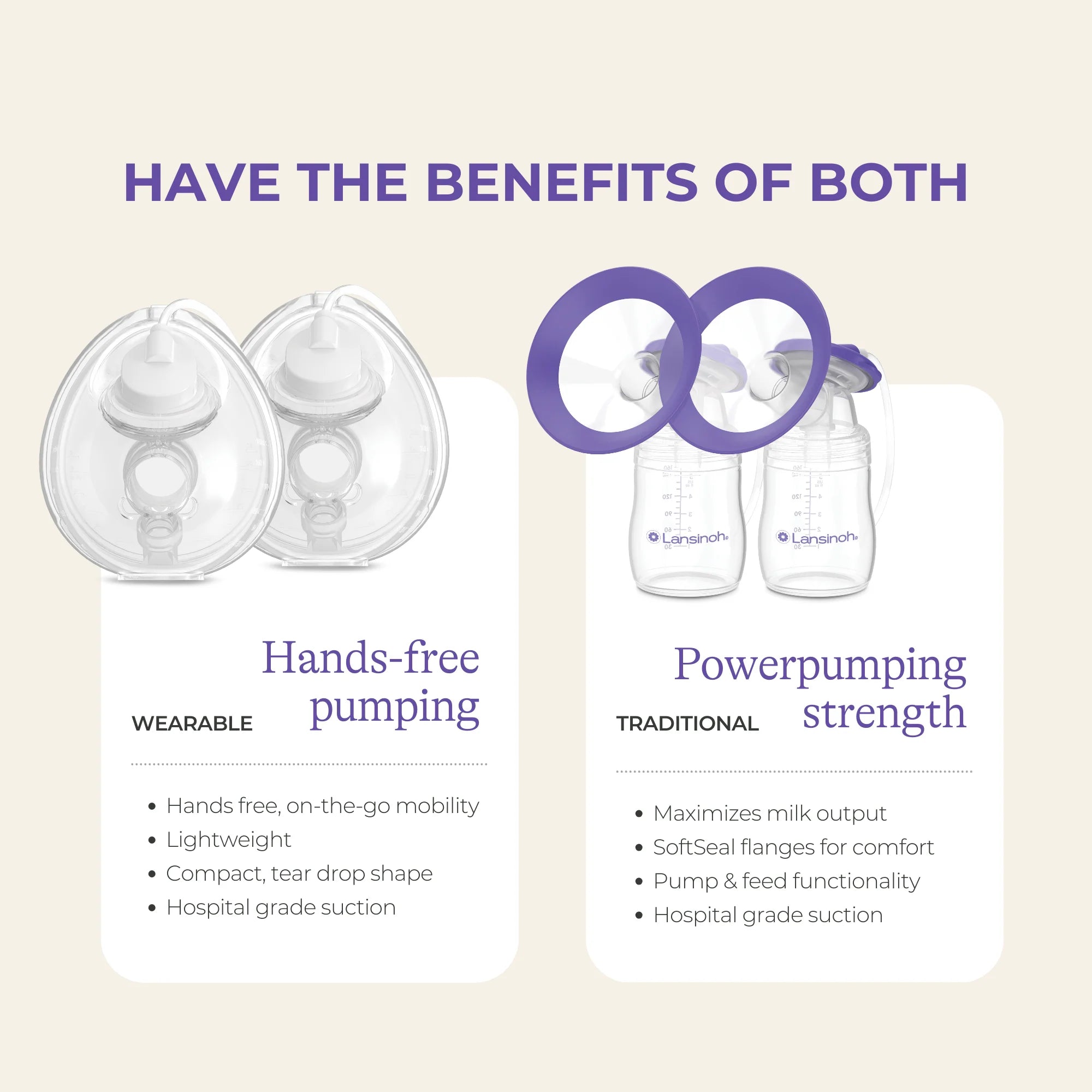 - TWO PUMPS IN ONE – Switch between wearable breast pump cups for on-the-go pumping or the Powerpump kit for maximum milk output—two-in-one customized for your needs