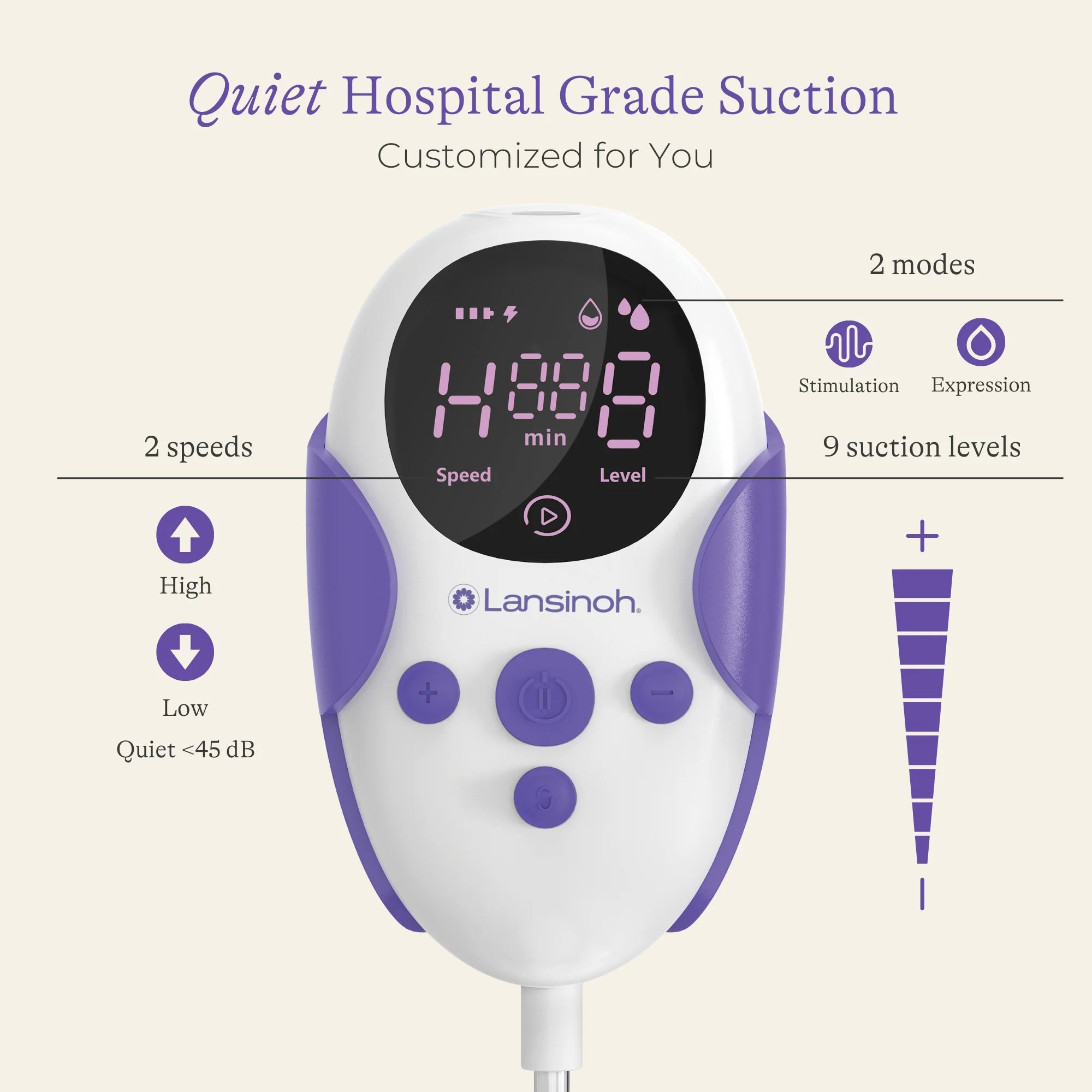- CONTROL AT YOUR FINGERTIPS – Customize your sessions with 9 levels of hospital strength suction, 2 pumping modes with adjustable speed settings, and an easy-to-read LCD display